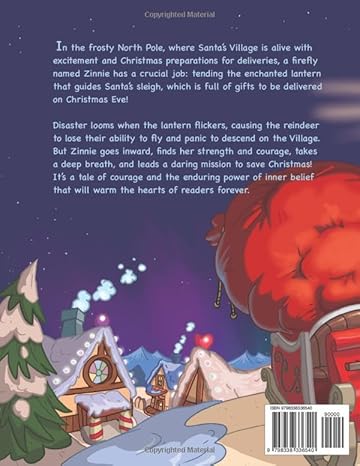 In the frosty North Pole, where Santa’s Village is alive with excitement and Christmas preparations for deliveries, a firefly named Zinnie has a crucial job: tending the enchanted lantern that guides Santa’s sleigh, which is full of gifts to be delivered on Christmas Eve!